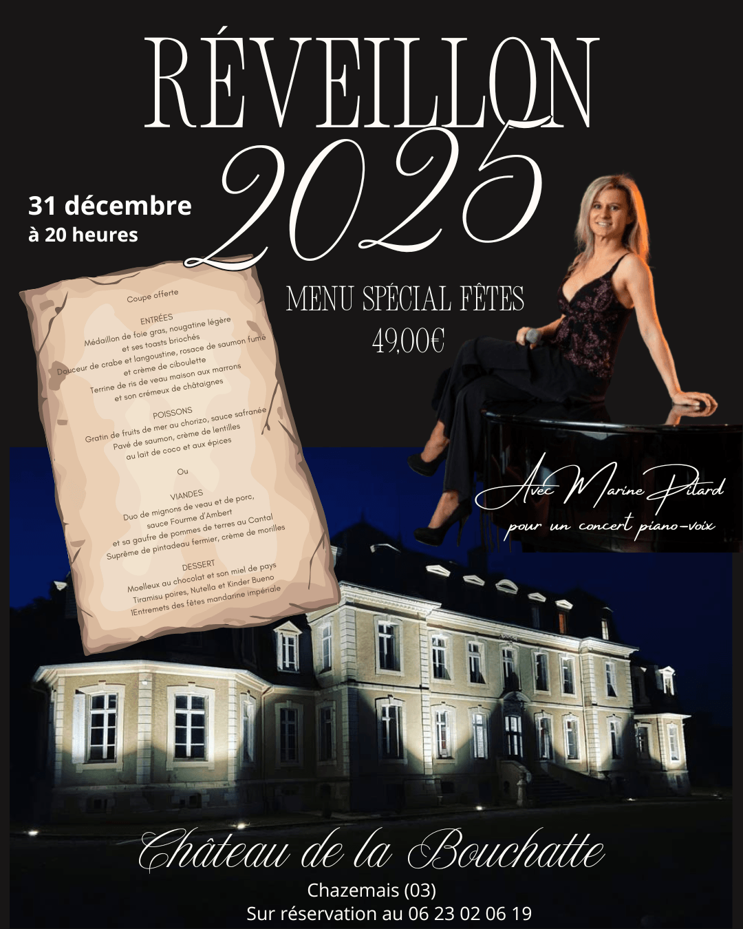 🎤 31 décembre, Chazemais (03) – Château de la Bouchatte – Réveillon
